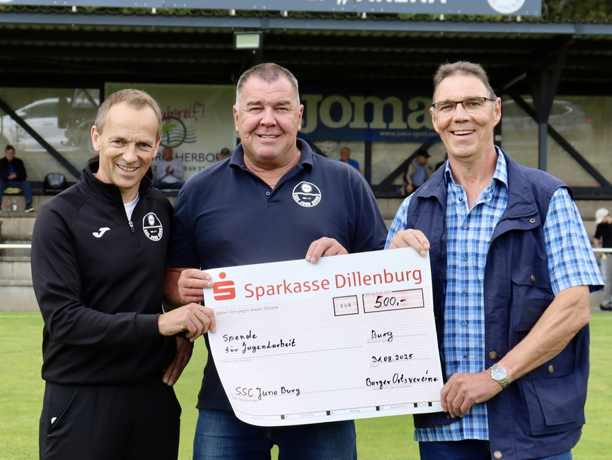 Im Zuge der "Jugendförderung der Sparkasse Dillenburg" haben wir im September 2023 eine Spende in Höhe von 1.500 € für die Anschaffung neuer Trikots erhalten. - Herzlichen Dank!
