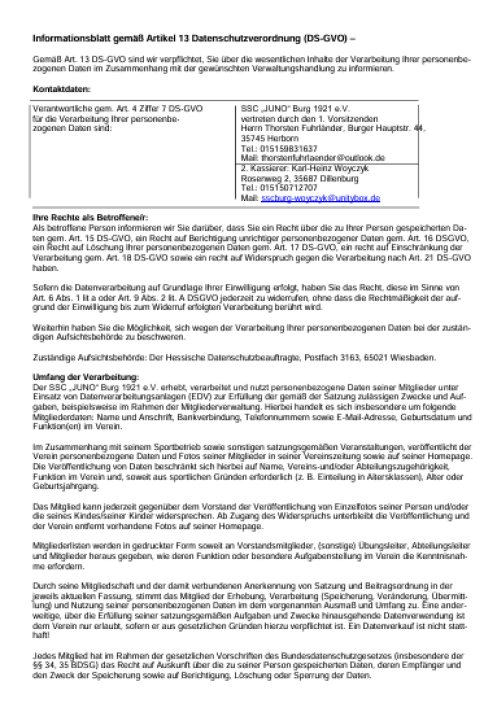 Der SSC "Juno" Burg ist ein Fußballverein in der Stadt Herborn. Die Burger "Erste" spielt in der Verbandsliga, die "Zweite" ist in der Kreisoberliga aktiv.